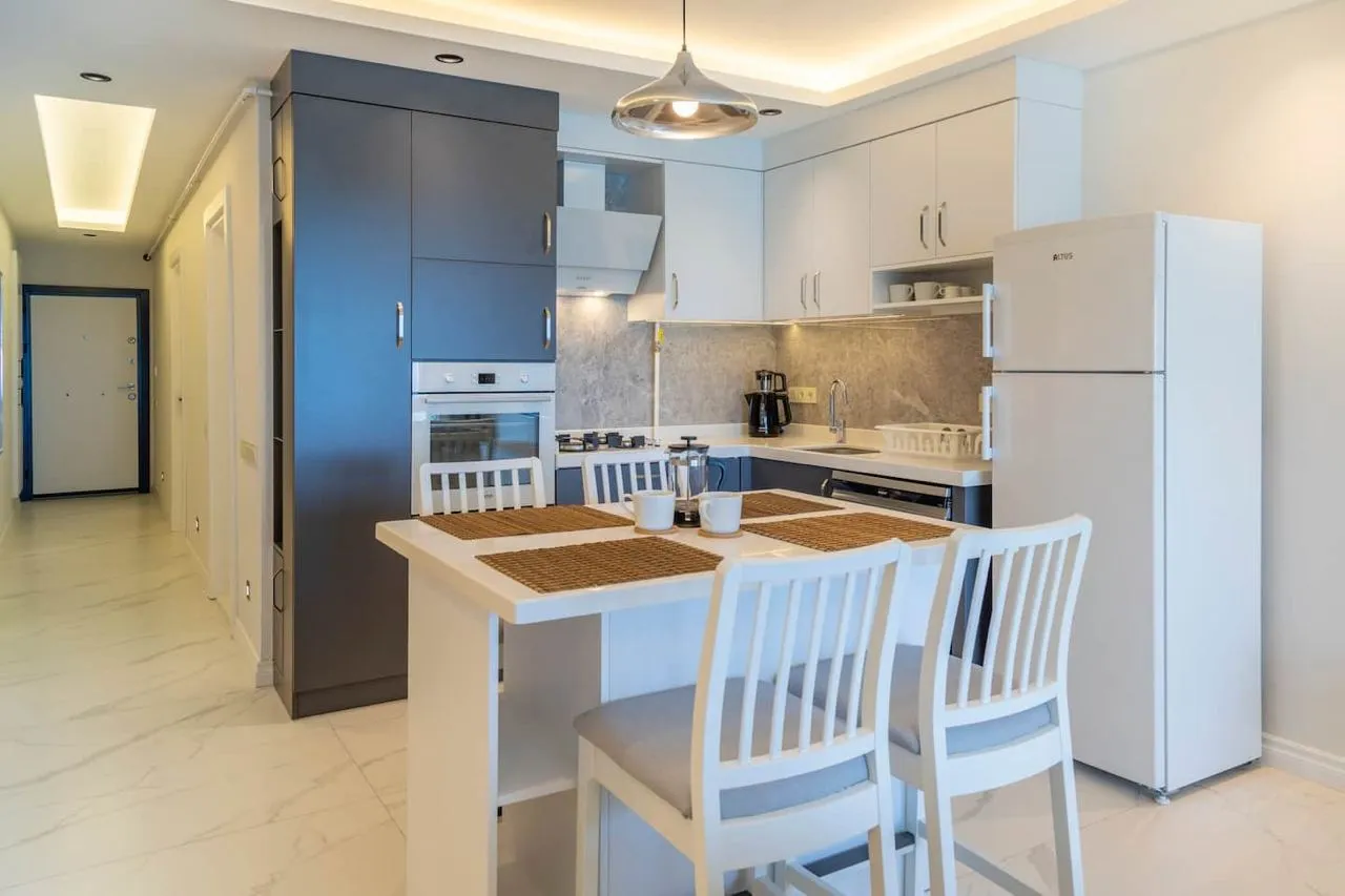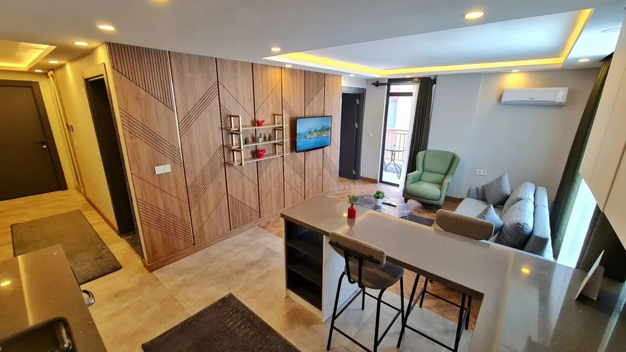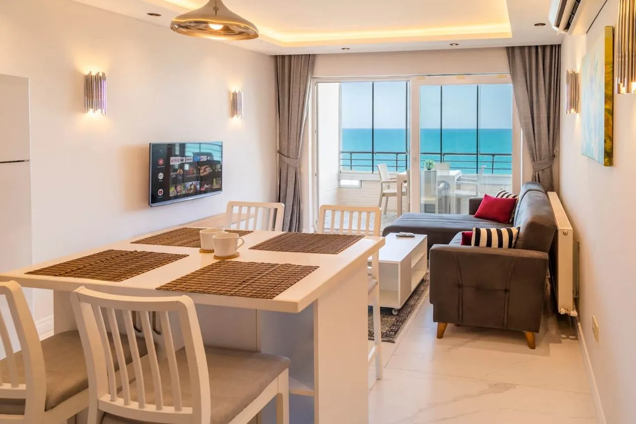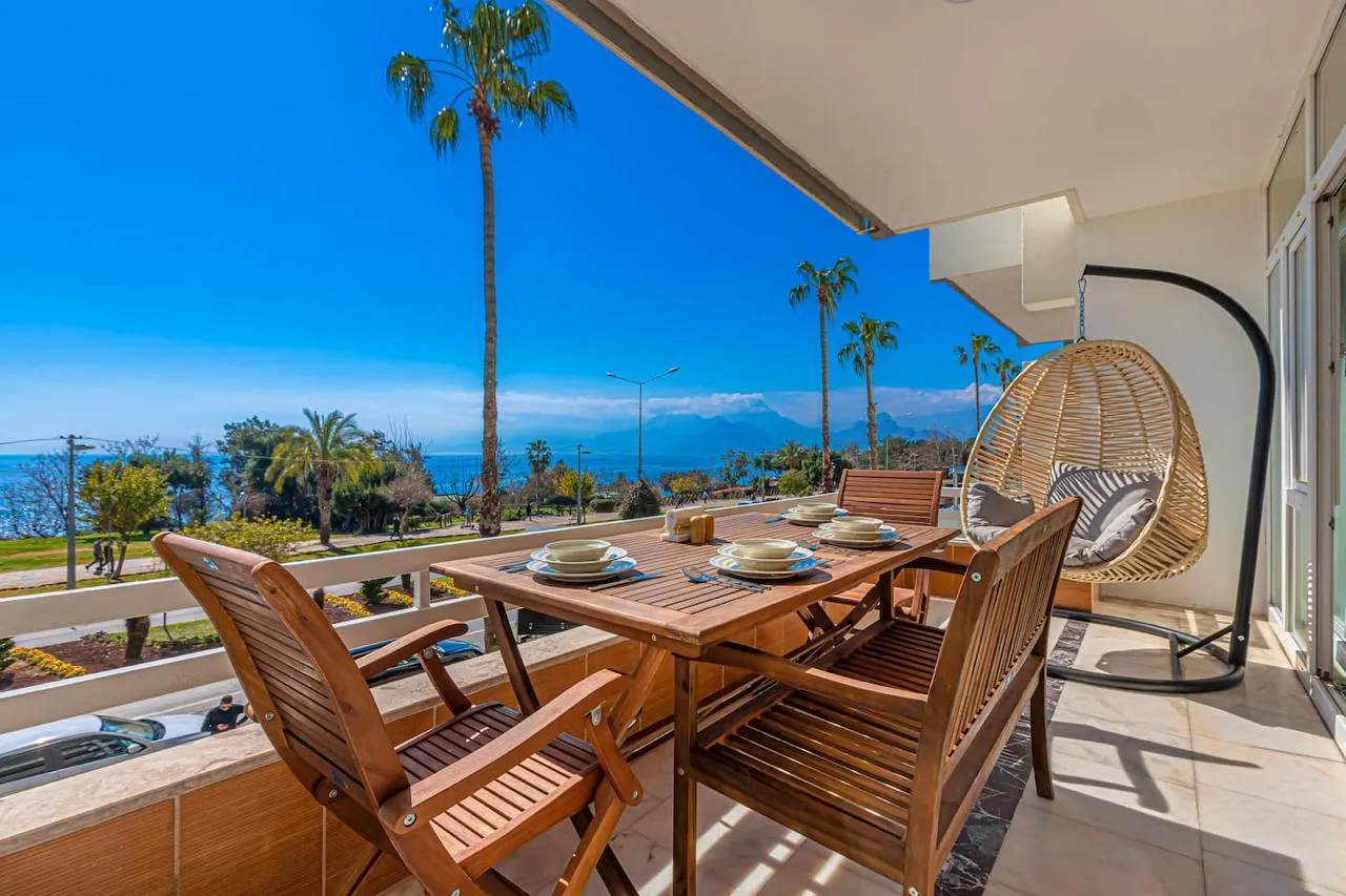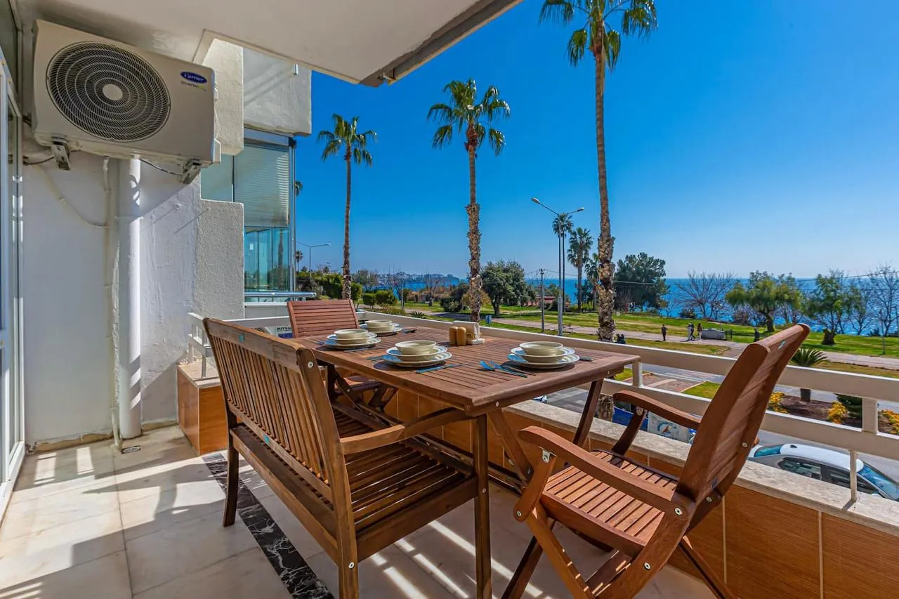 Квартира со свежим ремонтом находится на первой линии в одном из самых популярных туристических районов Анталии и всего в 10 минутах от центра.
