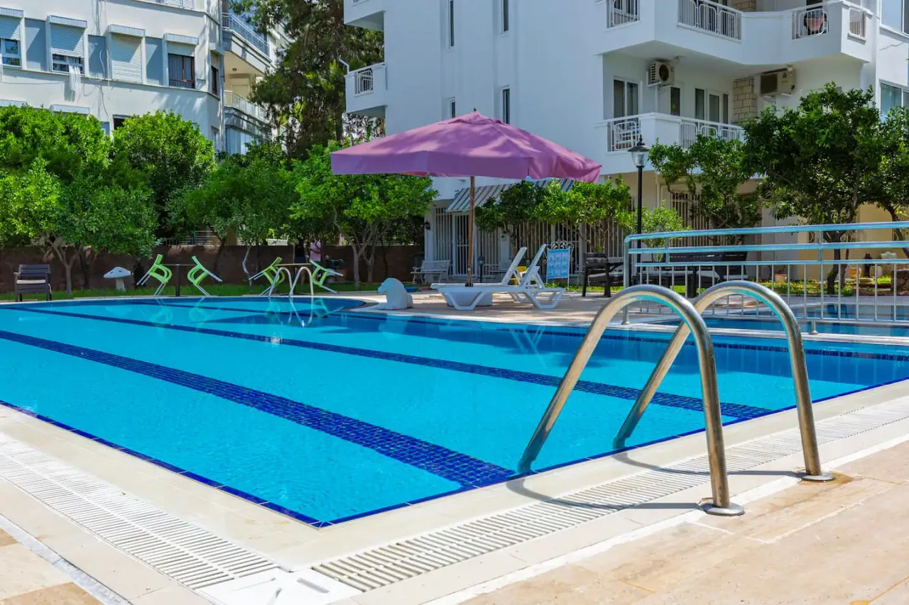 На территории комплекса бассейн. До пляжа Лара 15 минут ходьбы. Супермаркет Мигрос в 750 метрах. До аэропорта Анталии 10 км.